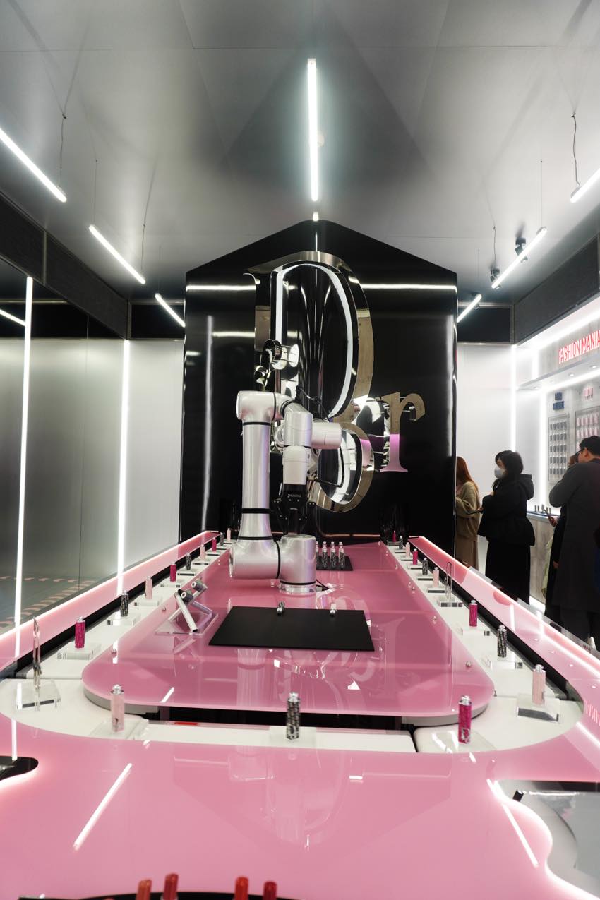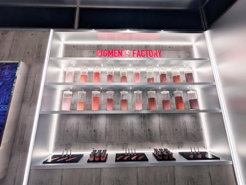会場に入ると、まるでディオールのリップスティック工場に潜入したような展示が広がっていました。リップの製造工程やマシーン、ピグメントの並ぶプロダクションラインを間近で見学でき、普段は絶対に見られない舞台裏を体感できました。