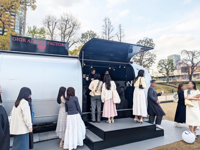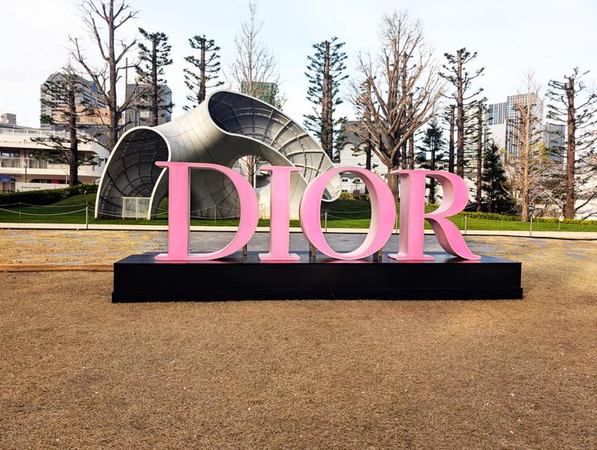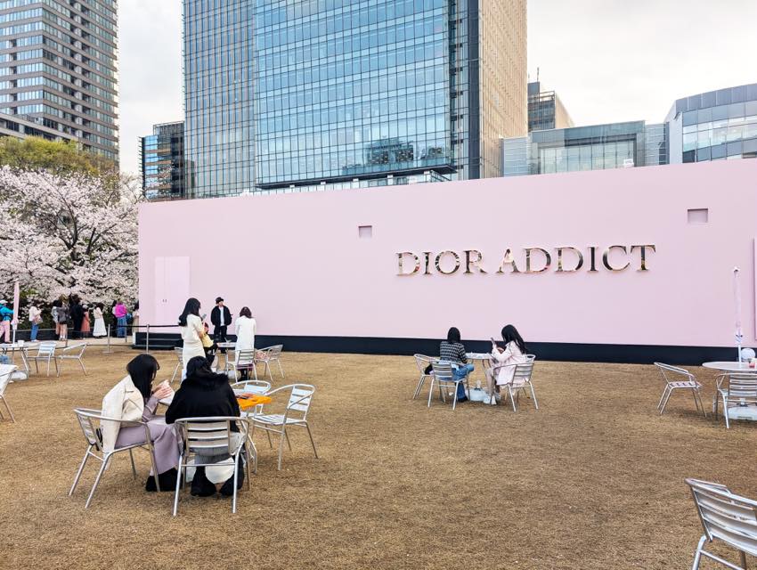 東京ミッドタウン(六本木)の芝生広場で開催されていた、ディオールの「ディオール アディクト ファクトリー」へ行ってきました。春の陽気に桜が咲き誇る中、会場に足を踏み入れると、ピンクに彩られたエントランスがとても華やかでワクワクしました。