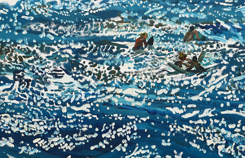 会場では、サーファーやグランドキャニオンなどをモチーフにしたペインティング作品を見ることができました。