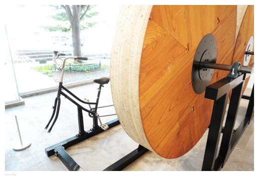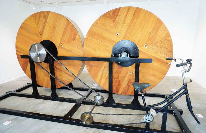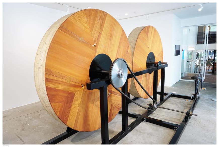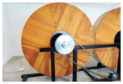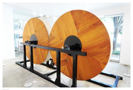 会場では、ユネスコの無形文化遺産に登録されている「佐原の大祭」で使われる山車の木製車輪「半間」をモチーフにした作品を見ることができました。