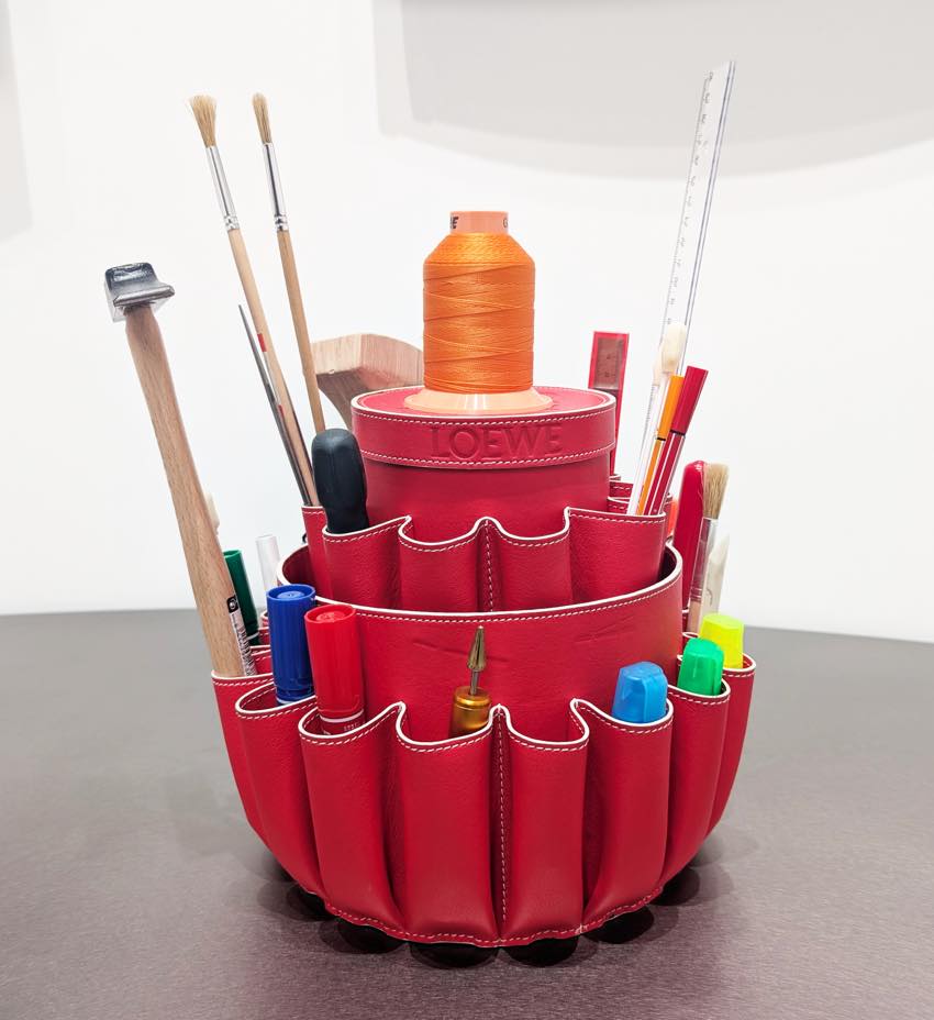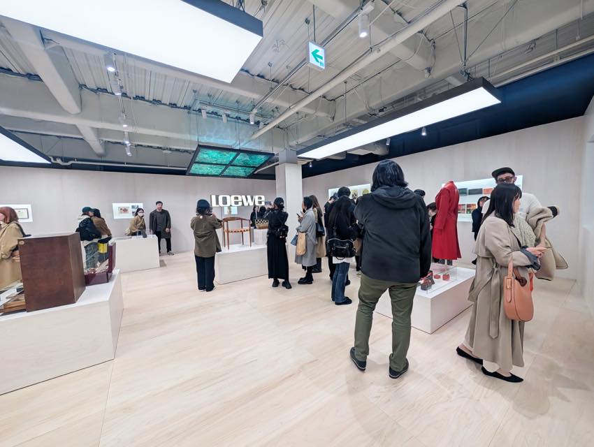 ロエベは1846年にマドリードで創業したレザー工房をルーツに持つ、世界的ファッションブランド。スペインの伝統的クラフトと前衛的デザインを融合させ、クリエイティブディレクターのジョナサン・アンダーソンのもとで革新的なコレクションを展開しています。本展では、ロエベの長い歴史と現代のクラフト精神が体感できる展示となっていました。