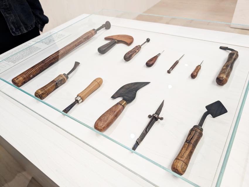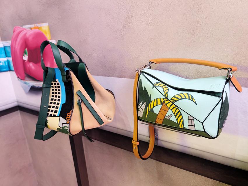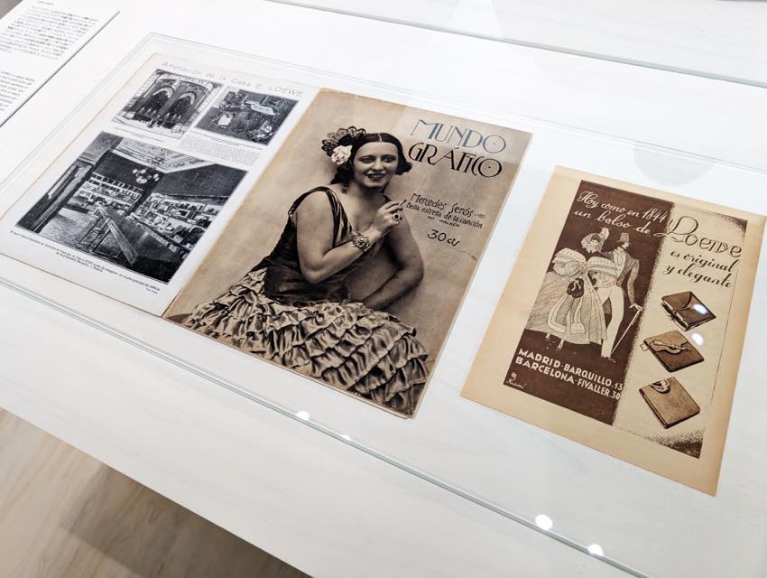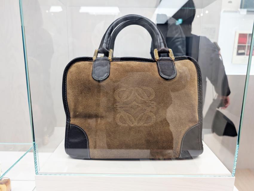 最初に目に入るのは、ロエベ創立当初のレザー工房の雰囲気を再現した展示。初期のアマソナやフラメンコバッグ、歴史的広告やコラボ作品など、手仕事で生み出されたアイテムを間近で見ることができ、職人たちの技術の高さに感動しました。