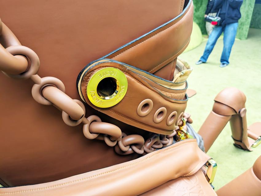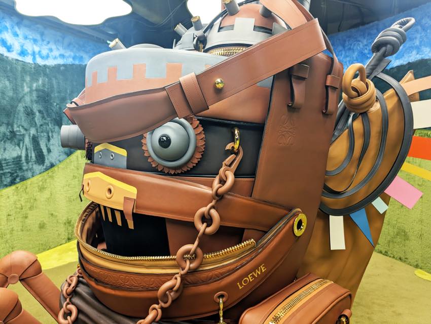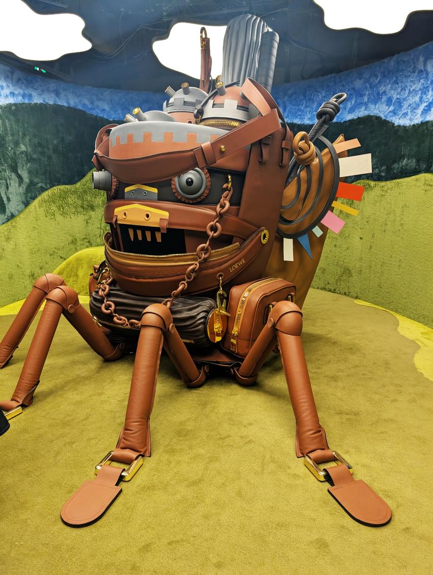 スタジオジブリの「ハウルの動く城」にインスパイアされた高さ2メートルの巨大バッグが登場。バッグの細部やパーツに込められたクラフト技術と遊び心を体感でき、まるで魔法の世界に迷い込んだようでした。