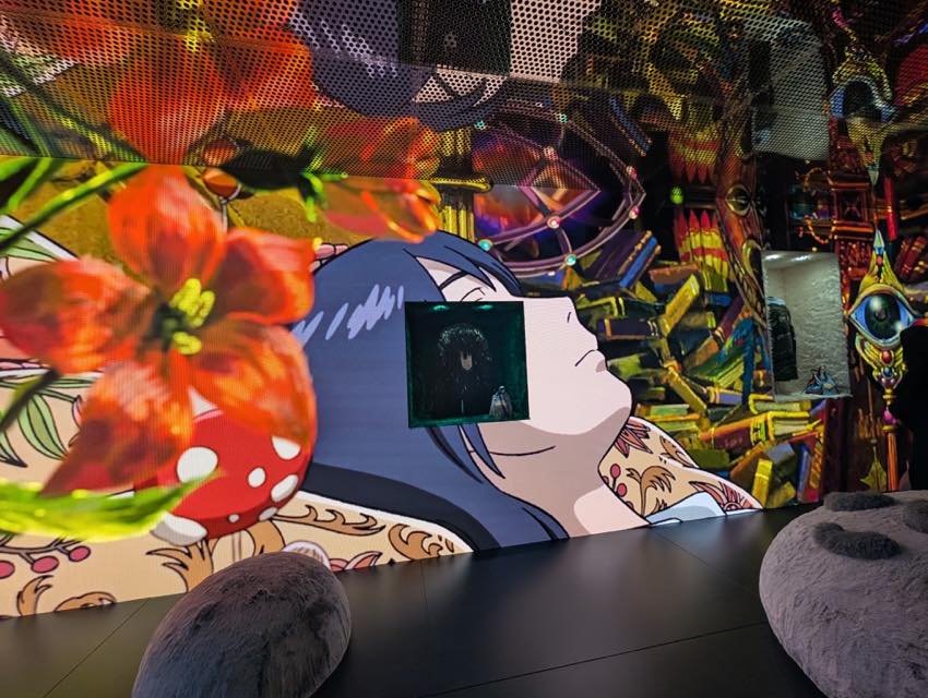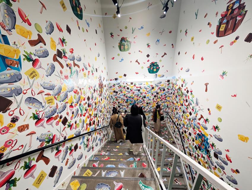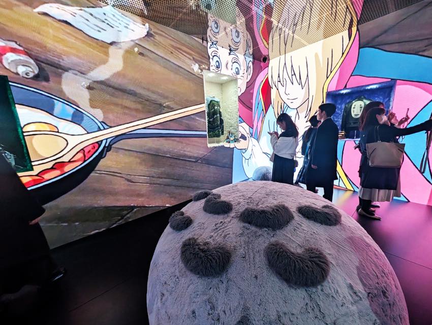 最後は幻想的なコラボレーション空間。スタジオジブリ風の小部屋や、空中に浮かぶ花園、世界の陶芸作品など、多彩な仕掛けが来場者を包み込み、展示全体の締めくくりとして圧倒的な没入体験を楽しめました。
