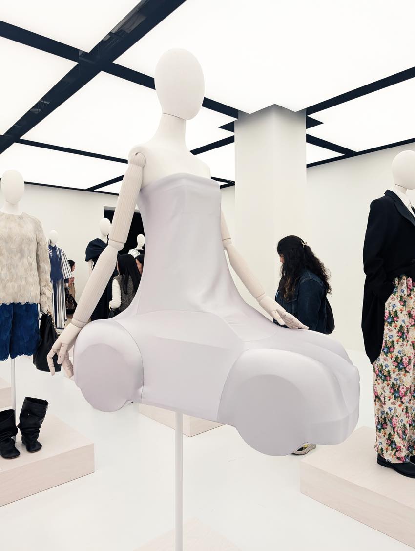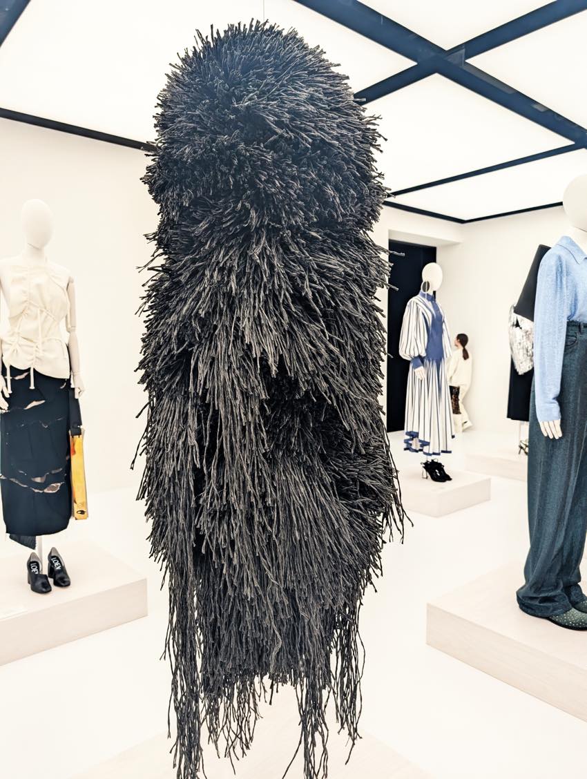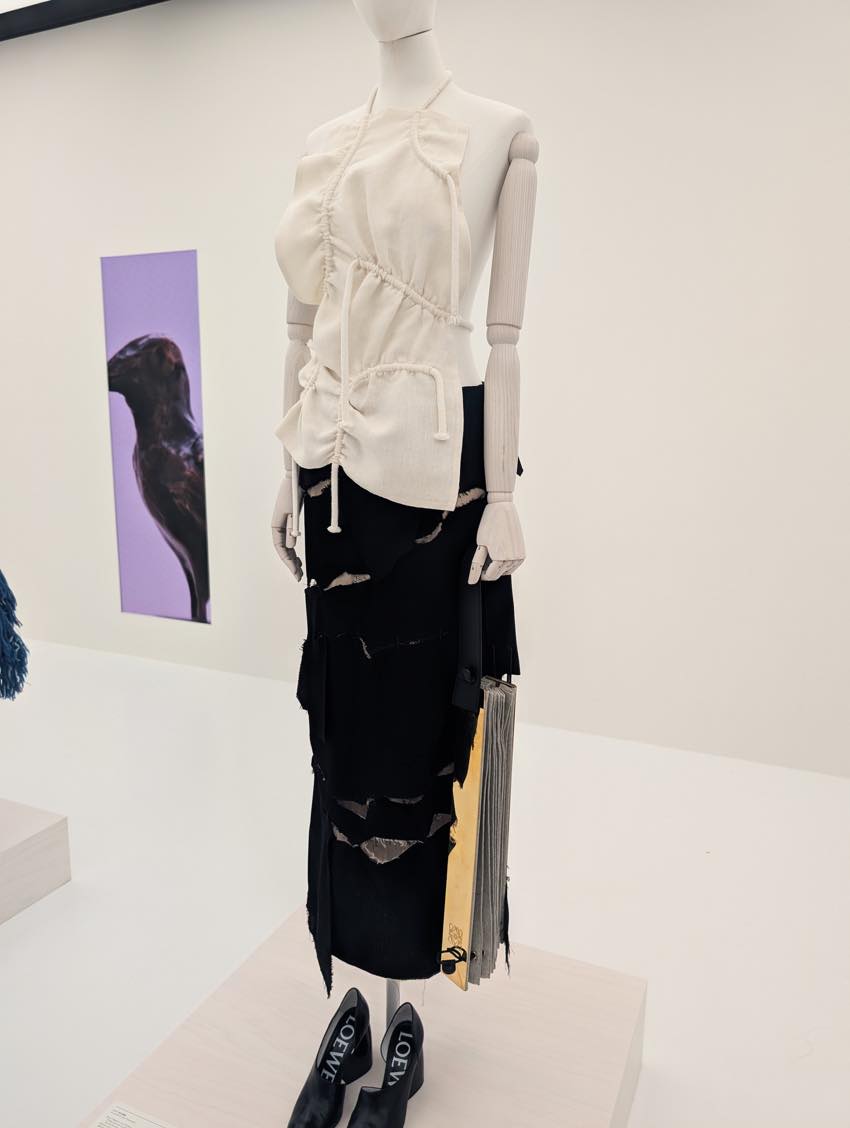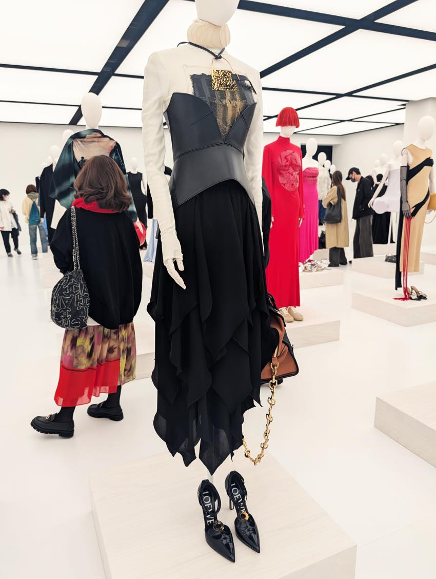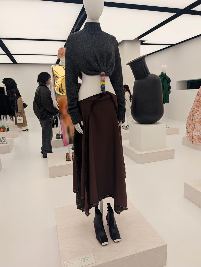 ジョナサン・アンダーソンの最新コレクションを展示。彫刻的なフォルムや意外性のある素材が印象的で、芸術作品と服が対話するように配置されているのが面白く、目が離せませんでした。
