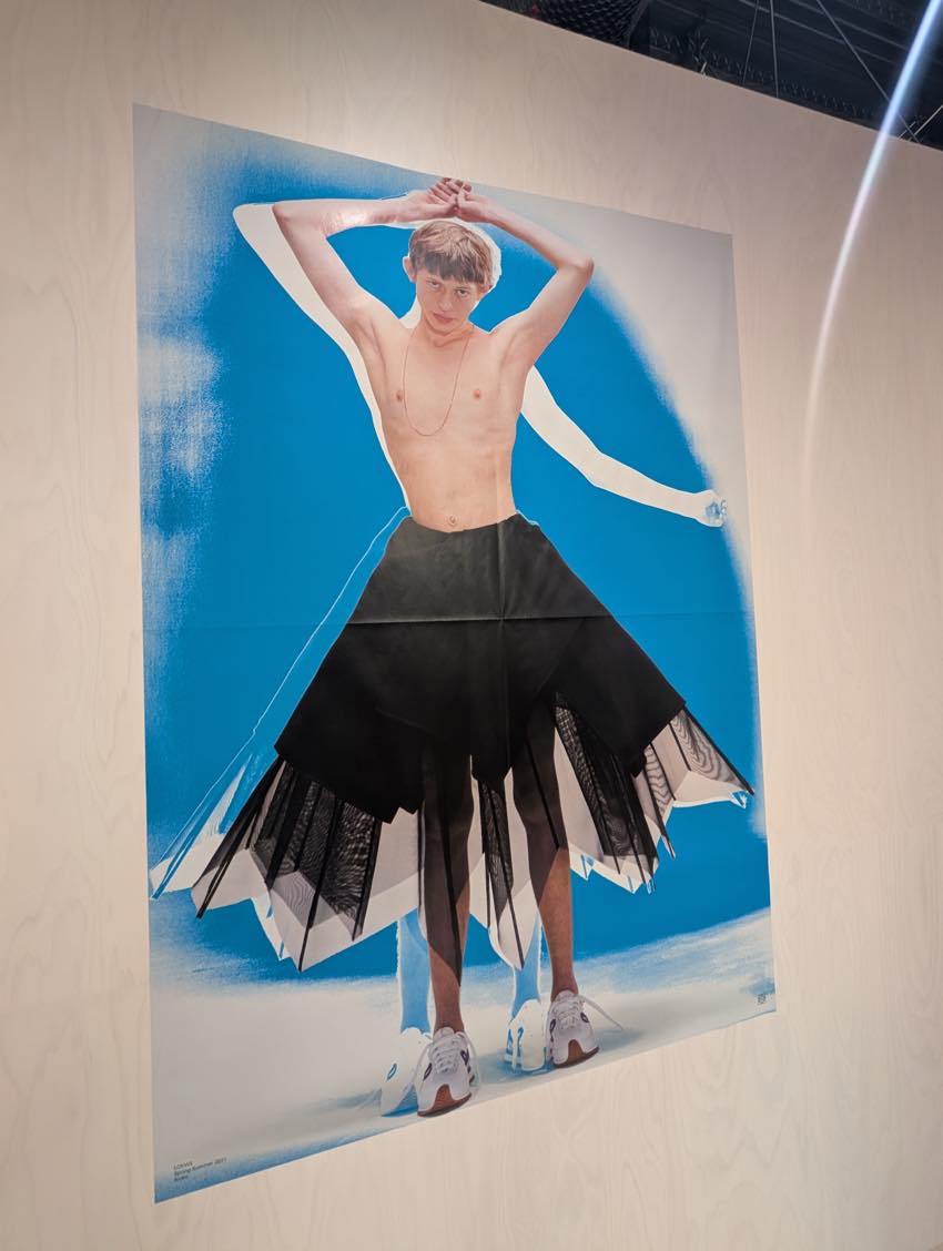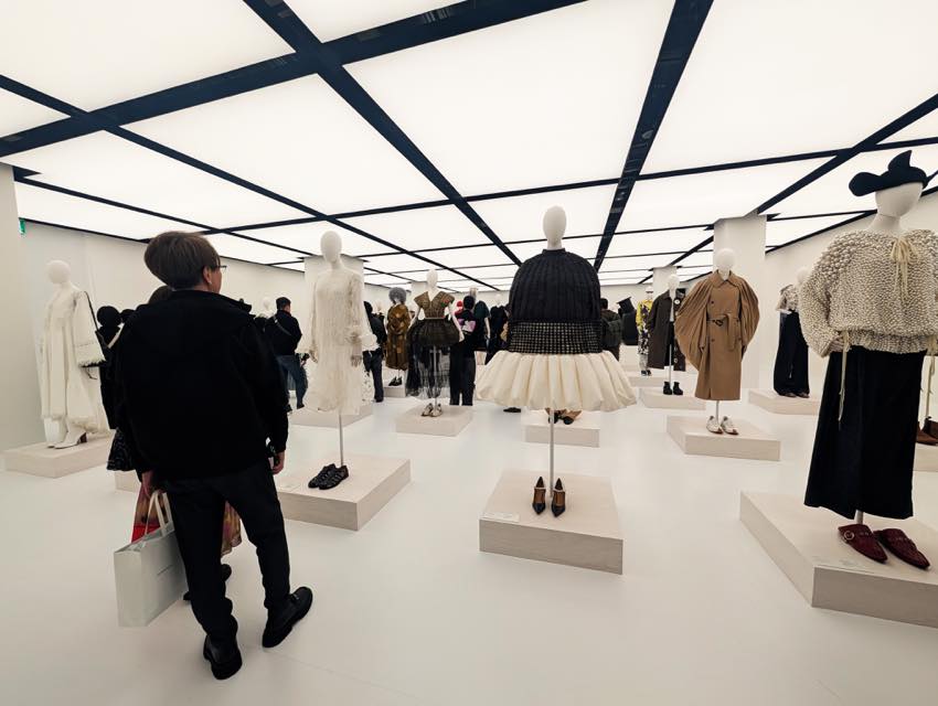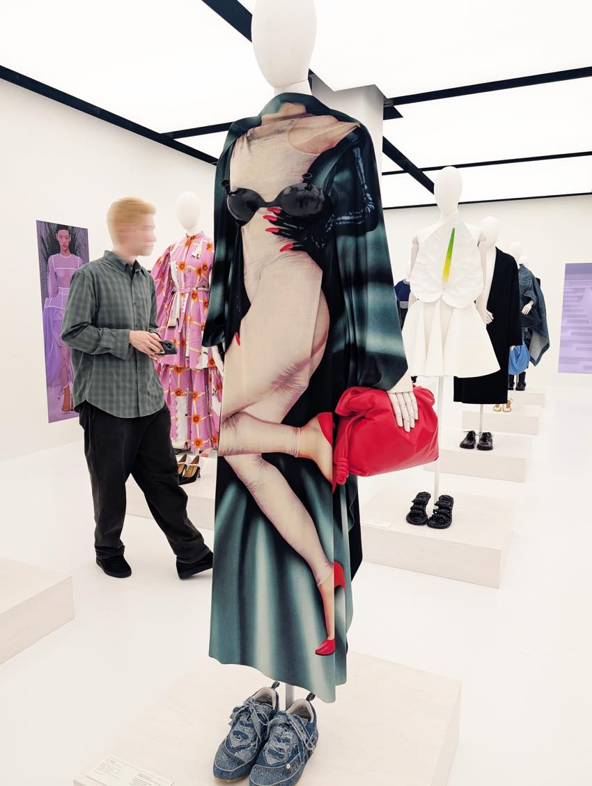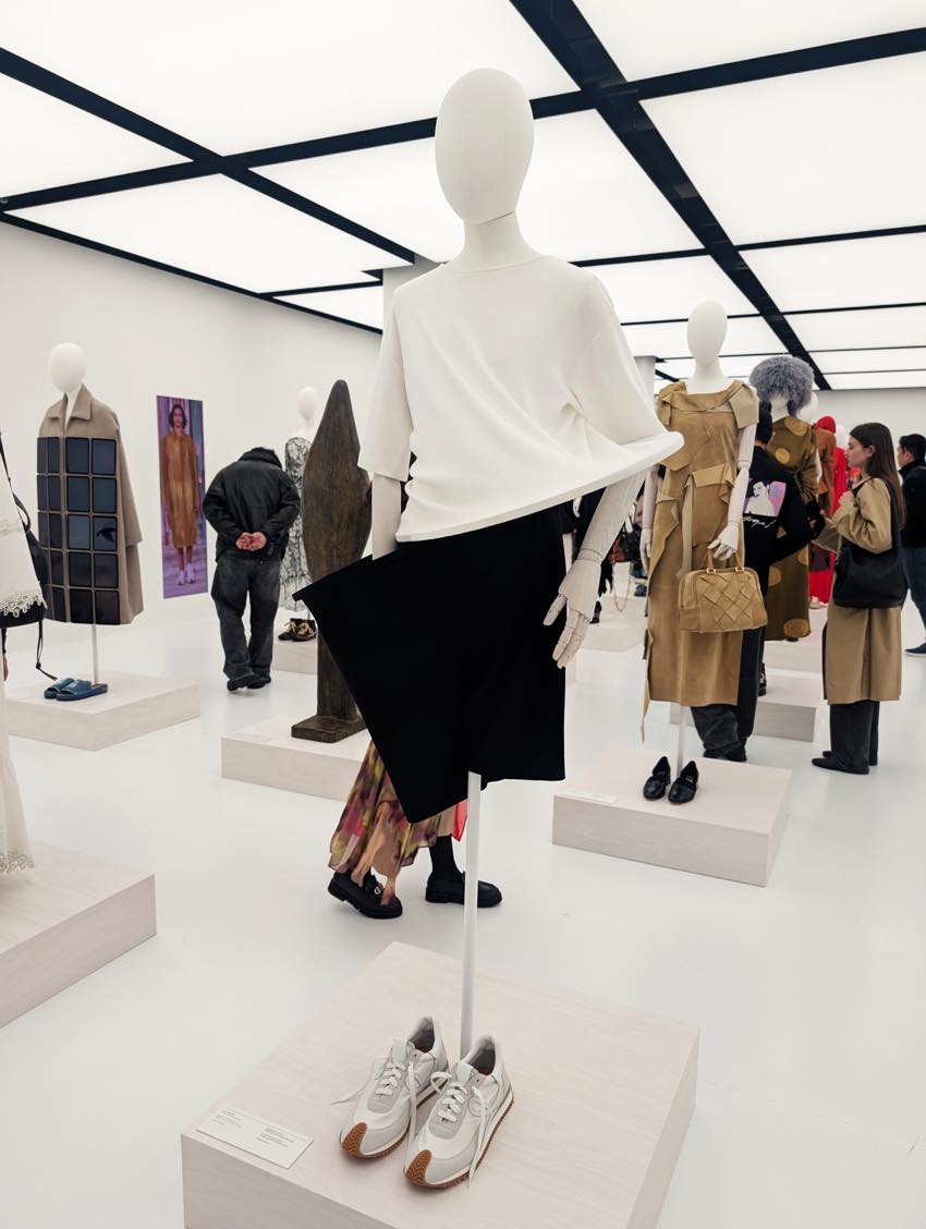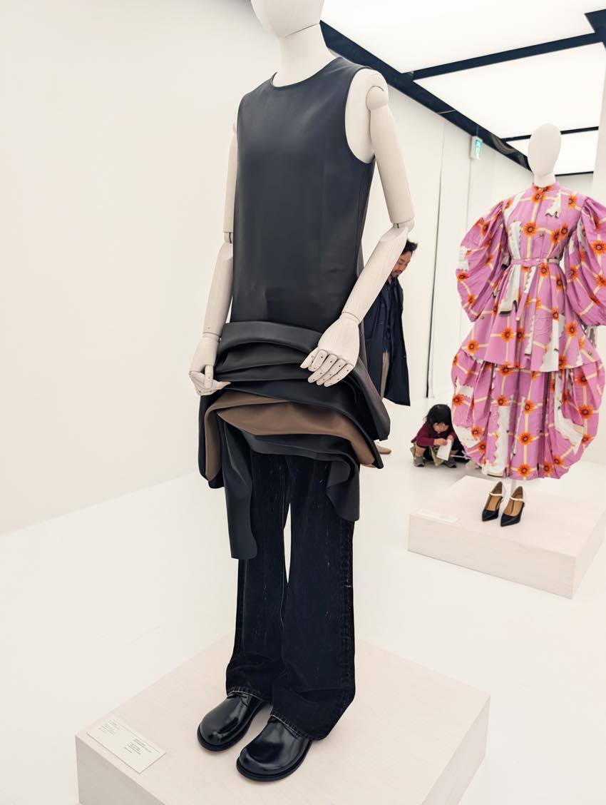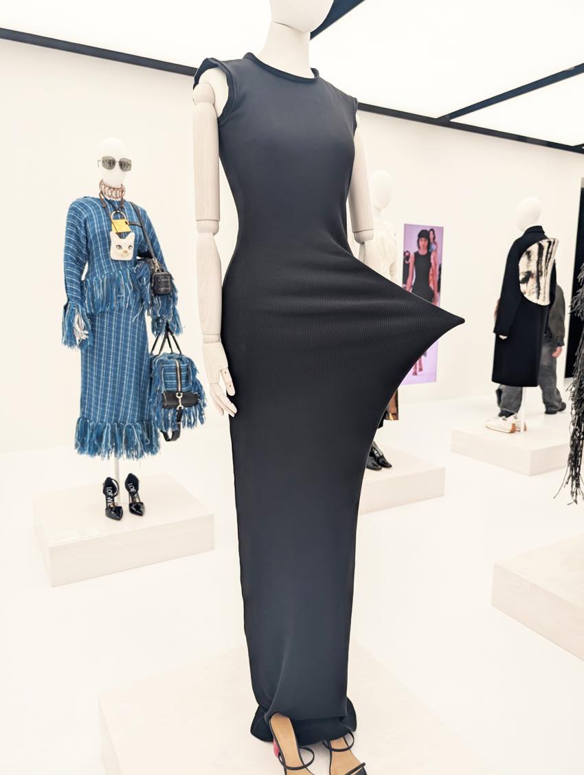 ジョナサン・アンダーソンの最新コレクションを展示。彫刻的なフォルムや意外性のある素材が印象的で、芸術作品と服が対話するように配置されているのが面白く、目が離せませんでした。