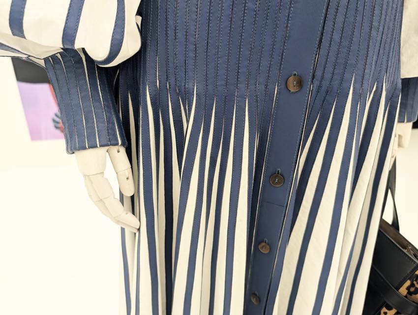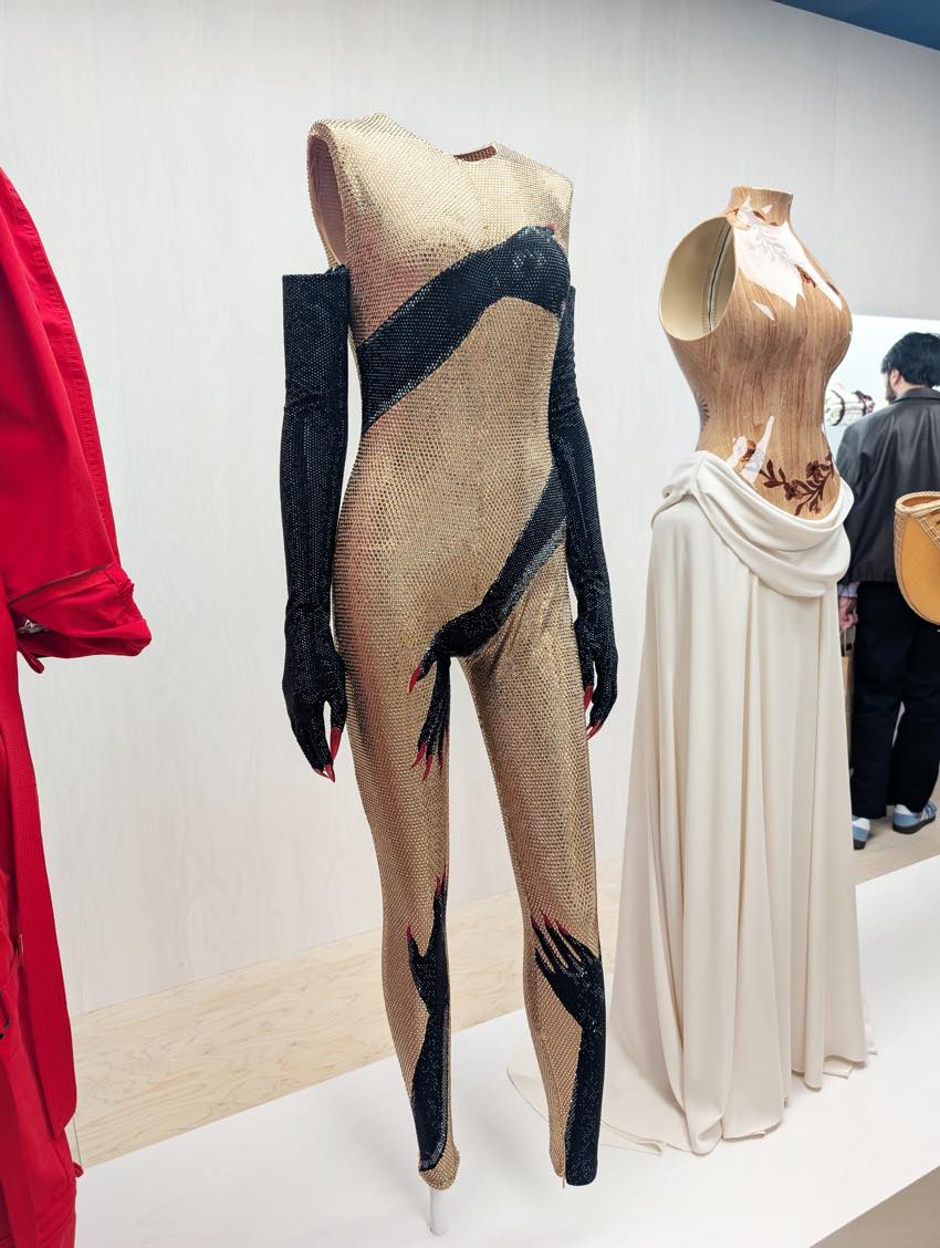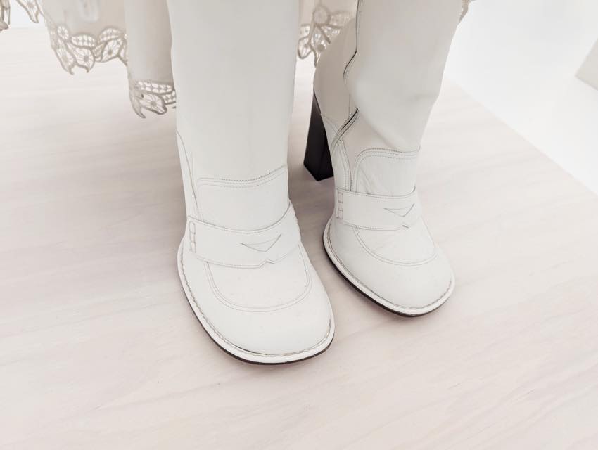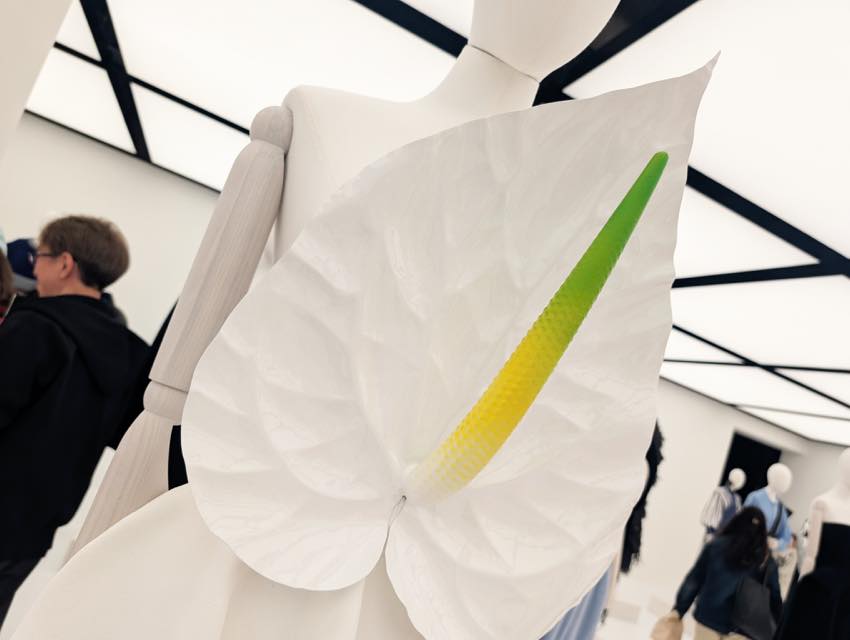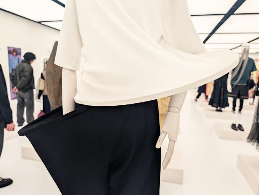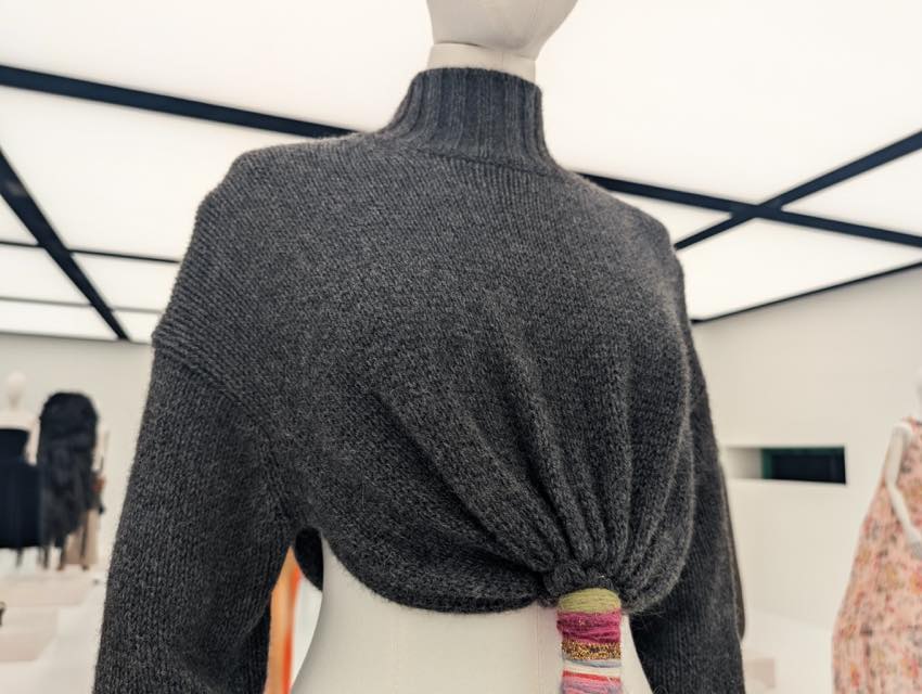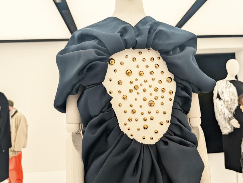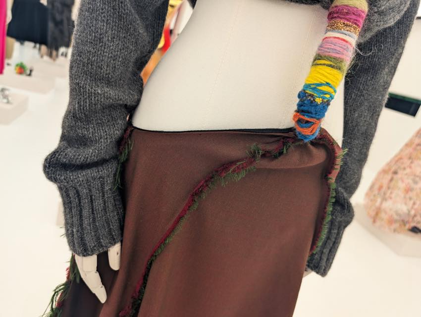 ジョナサン・アンダーソンの最新コレクションを展示。彫刻的なフォルムや意外性のある素材が印象的で、芸術作品と服が対話するように配置されているのが面白く、目が離せませんでした。