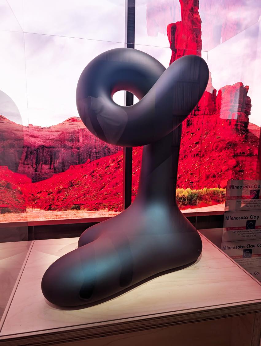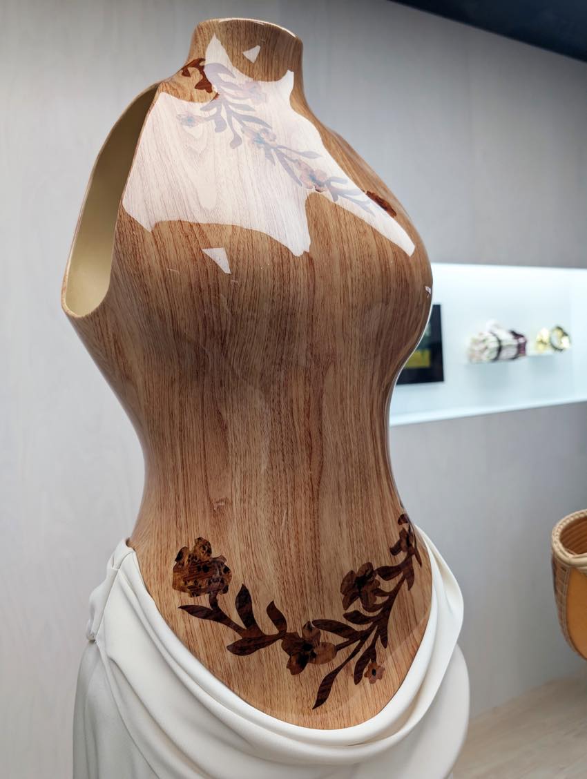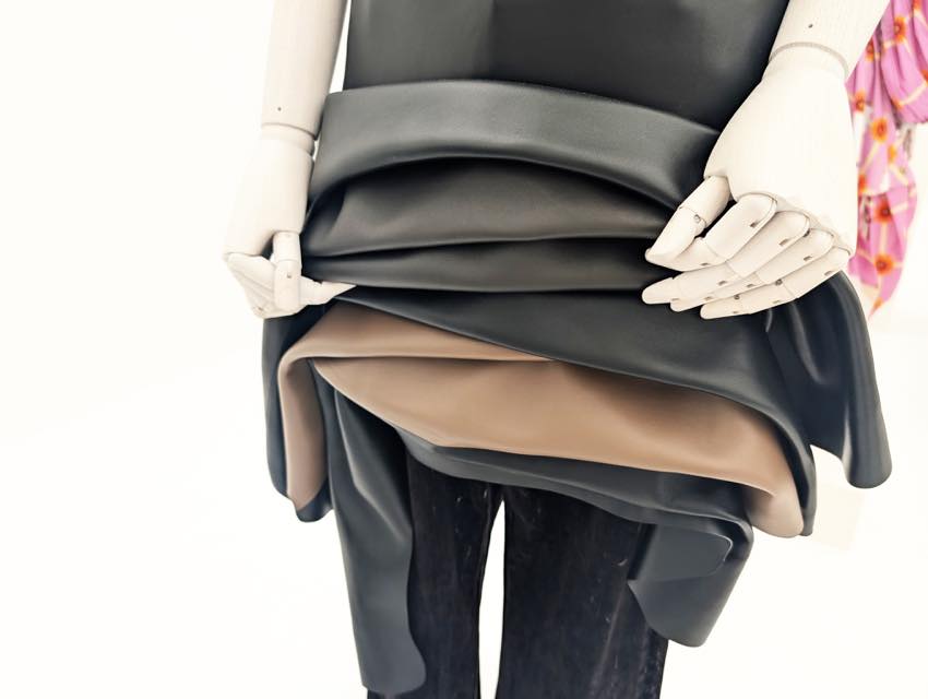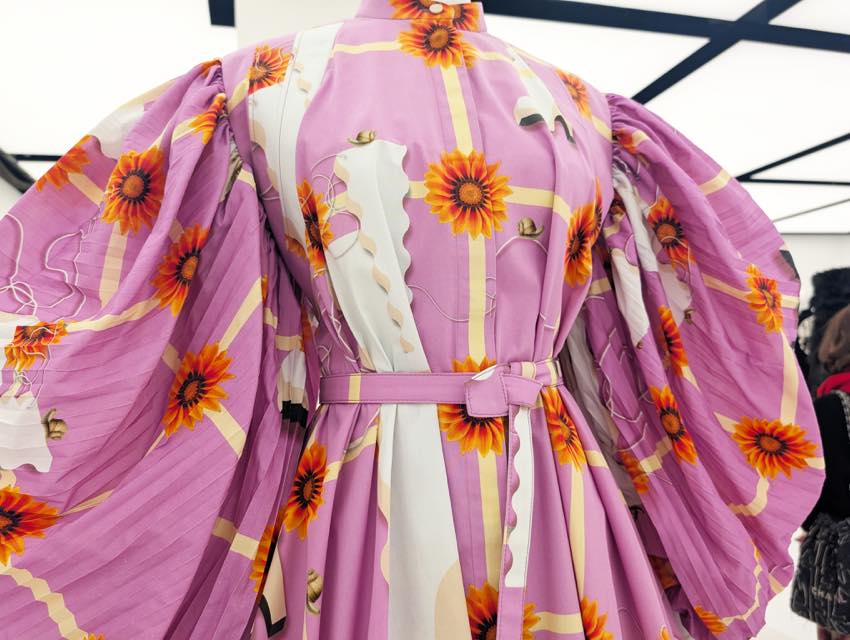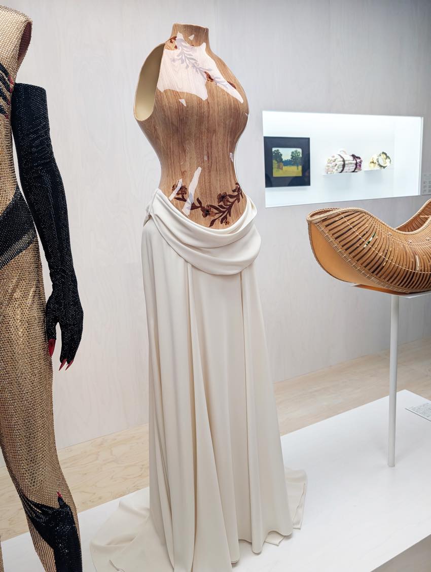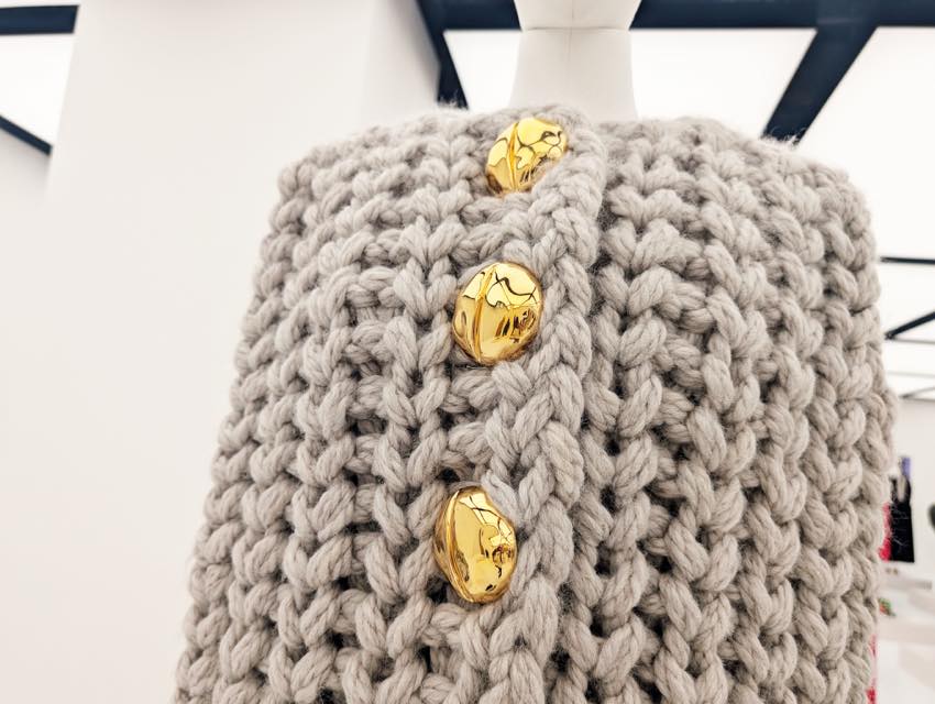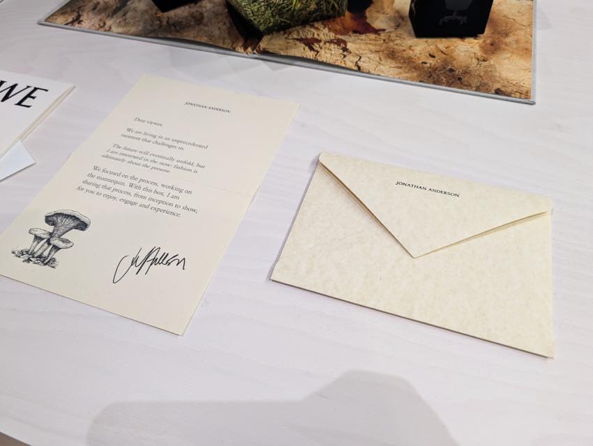 ジョナサン・アンダーソンの最新コレクションを展示。彫刻的なフォルムや意外性のある素材が印象的で、芸術作品と服が対話するように配置されているのが面白く、目が離せませんでした。