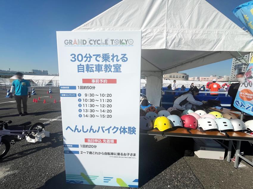 体験コーナーも充実していて、ヘルメットの試着や自転車シミュレーターなど、安全について楽しく学べる工夫も。