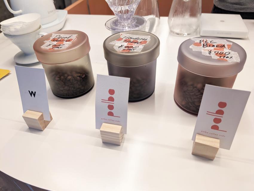 お店に入ると、カウンターには数種類の自家焙煎豆がずらり。5種類ほどのコーヒーから好みに合わせて選ぶことができます。迷ったときはスタッフの方が丁寧にアドバイスしてくれるので、コーヒーに詳しくない人でも安心。今回はおすすめをお願いして、しっかりと香ばしく、それでいて飲みやすい一杯をいただきました。