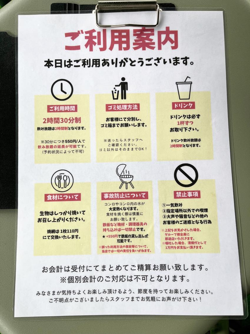 とにかく準備が楽ちんで、ガスコンロやトングなどの機材はもちろん、紙皿やタレまで最初から揃っているので、好きな食材を持ち込むだけで手ぶら感覚でBBQがスタートできちゃいます。